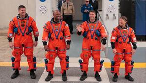 Astronauten verlassen auf ihrem Weg zum Mond die Erdumlaufbahn