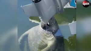 Durstige Seekuh trinkt Wasser aus Polizeiboot